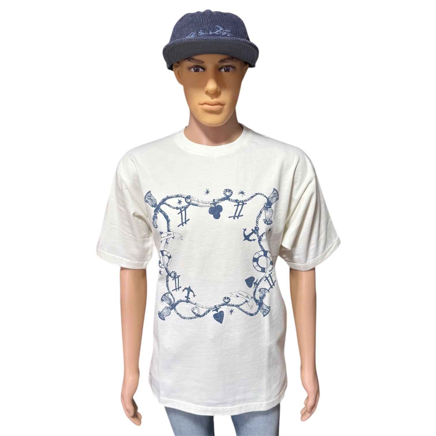 Play Your Cards Heavyweight Tee (Bone/Petro Blue) (Oversized)