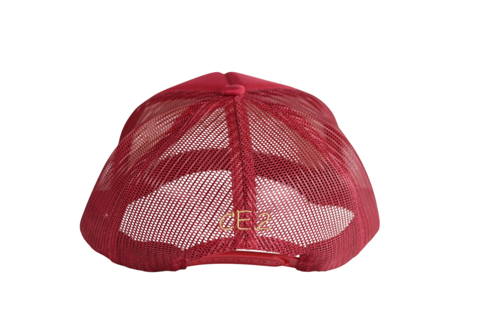 The Mid Profile 5 Panel Foam Trucker Hat is constructed with rear mesh panels and a foam front. It features an integrated cotton sweatband, a pre-curved bill, and an adjustable plastic snap closure.