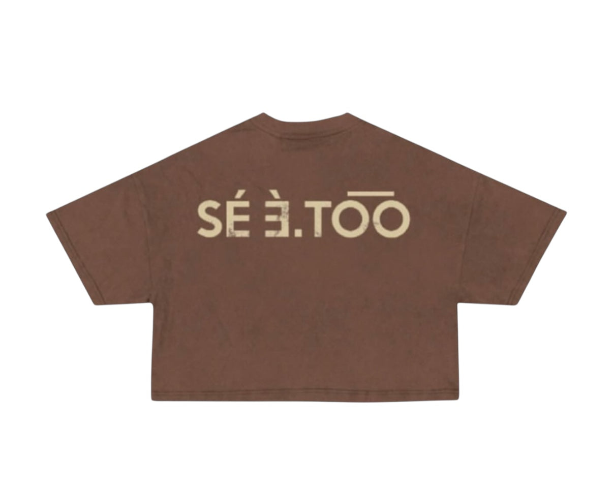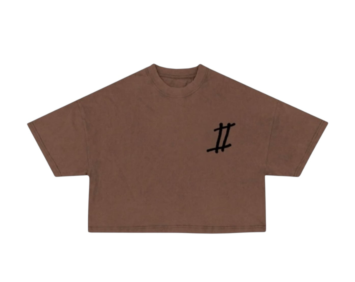 Women Roman Numeral Crop Tee (Heavyweight) (Brown)